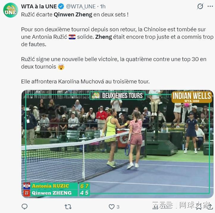 不过,欧洲一些媒体对郑钦文输球的态度则明显温和多了,直言郑钦文因状态不佳和过多失误提前被淘汰,有些遗憾。