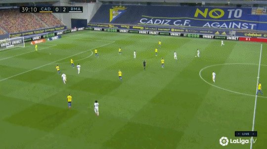40'皇马在右侧制造混乱,卡塞米罗大禁区内得球吊向门前,本泽马门前头球破门!